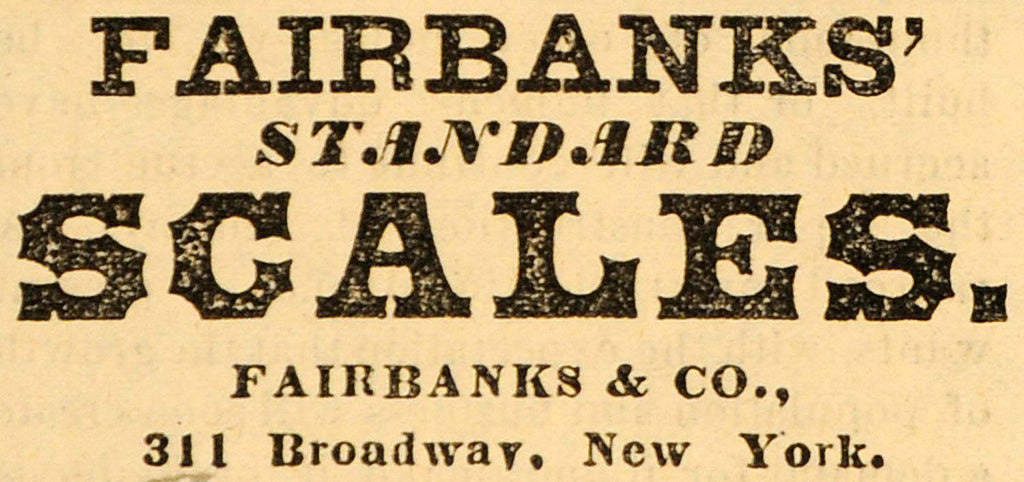 1882 Ad Fairbanks' Standard Scales 311 Broadway NY - ORIGINAL ADVERTISING TIN6