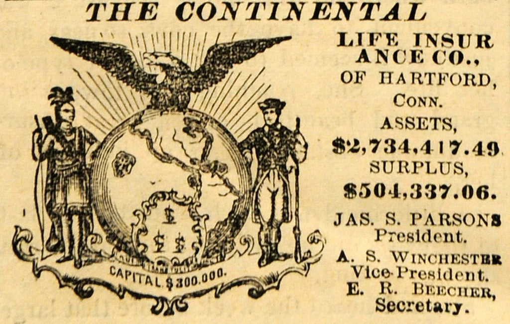 1882 Ad Continental Life Insurance Hartford Connecticut - ORIGINAL TIN6