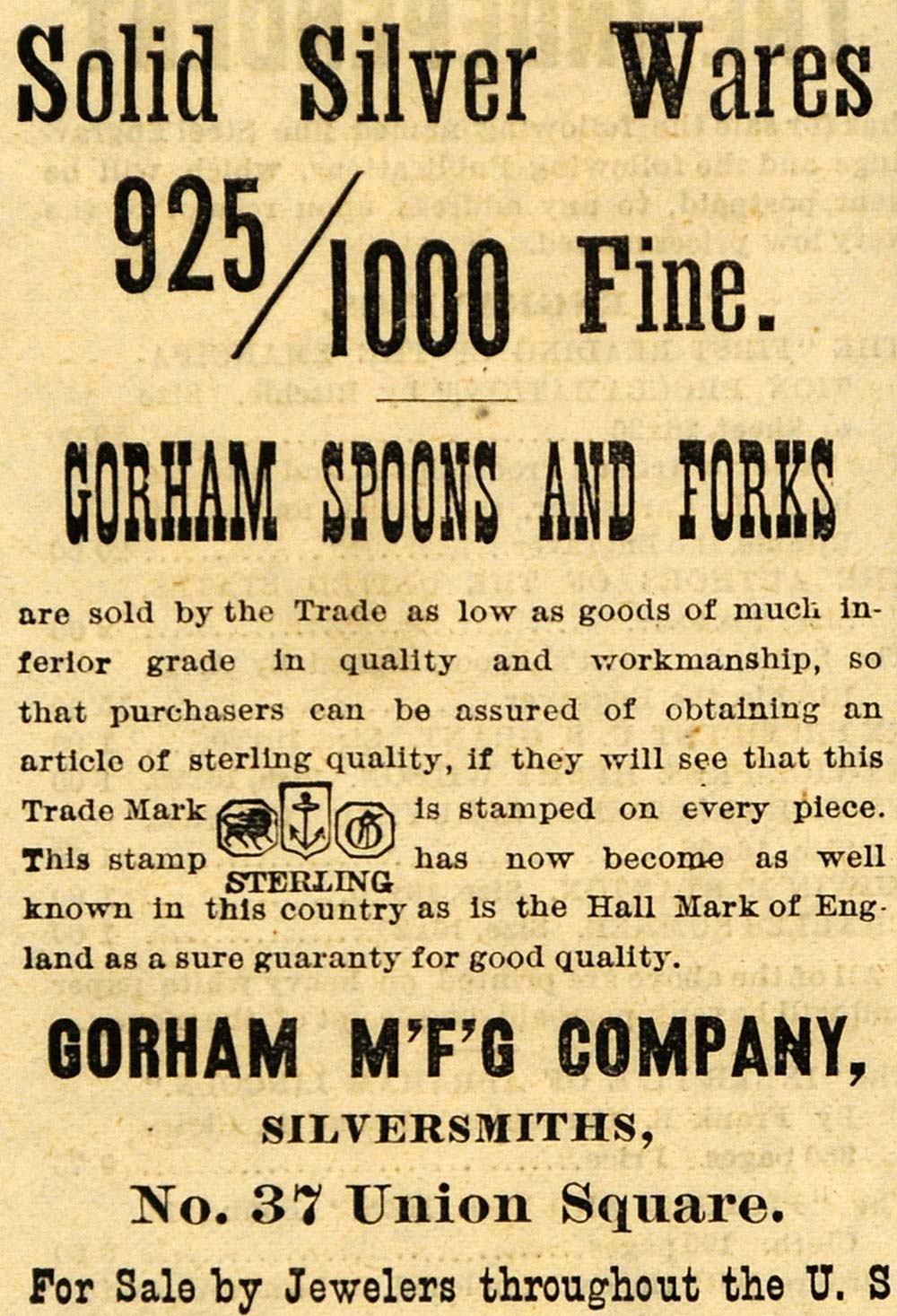 1882 Ad Gorham Solid Silverware Silversmiths Jewelers - ORIGINAL TIN6