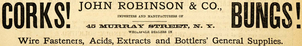 1883 Ad Corks Bungs John Robinson Acid Extract New York - ORIGINAL GROC1