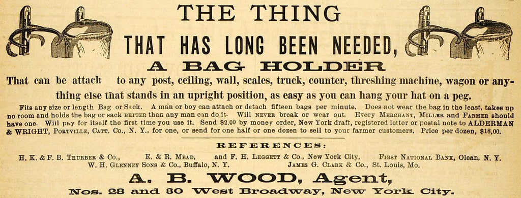 1883 Ad A. Wood Bag Holder Machine Wagon Truck Wright - ORIGINAL GROC1
