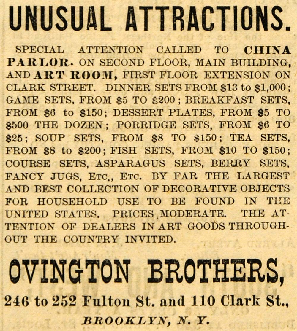 1882 Ad Ovington Brothers Unusual Attractions Decor - ORIGINAL ADVERTISING TIN6