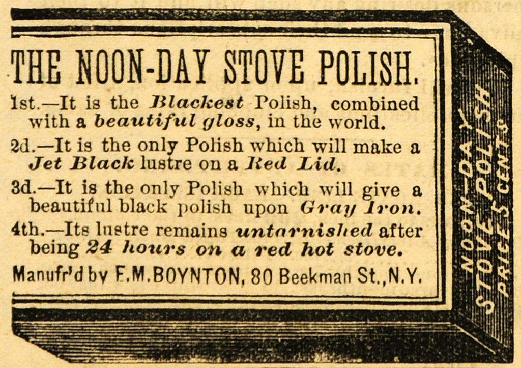 1882 Ad Noon-Day Stove Black Polish F. M. Boynton NY - ORIGINAL ADVERTISING TIN6
