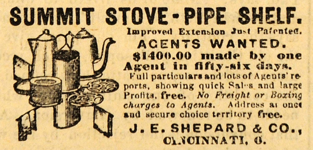 1882 Ad Summit Stove Pipe Shelf J. E. Shepard Agents - ORIGINAL ADVERTISING TIN6