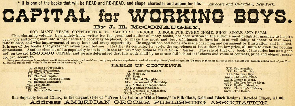 1883 Ad J. McConaughy Grocer Book Capital Working Boys - ORIGINAL GROC1