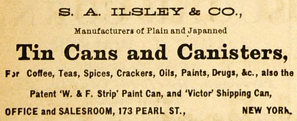 1883 Ad Ilsley Tin Can Canister Coffee Tea Spice Paint - ORIGINAL GROC1