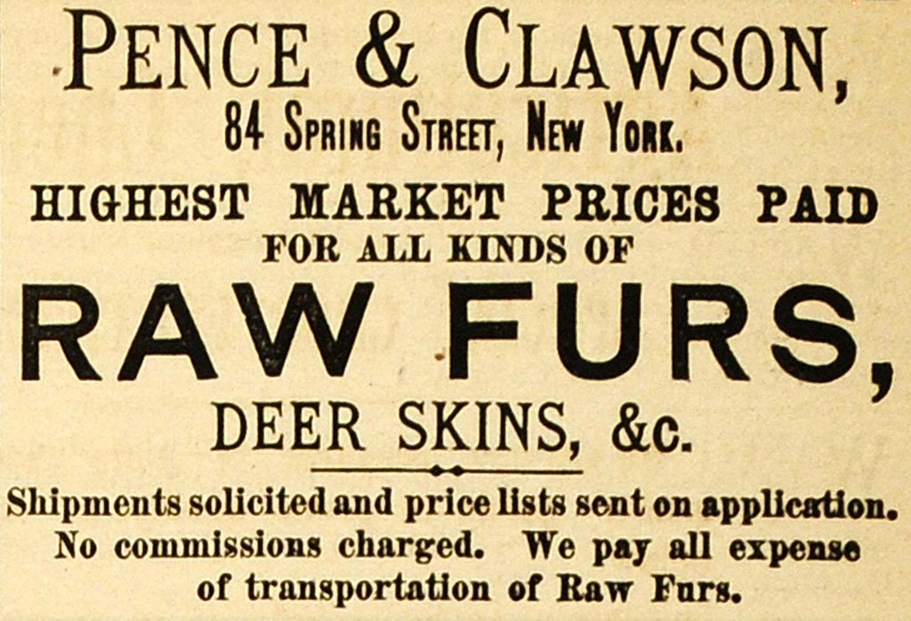 1883 Ad Raw Fur Deer Skin Pence Clawson Animal Clothing - ORIGINAL GROC1