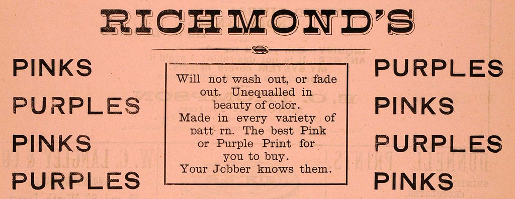 1883 Ad Richmond's Dye Pattern Clothing Print Fabric - ORIGINAL GROC1