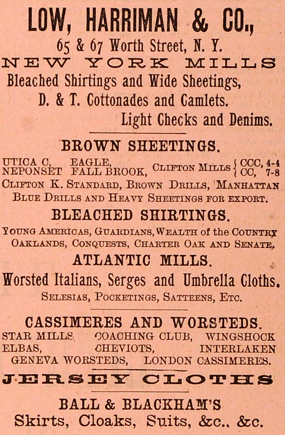 1883 Ad Low Harriman Jersey Cloth Fabric Sheets Camlet - ORIGINAL GROC1