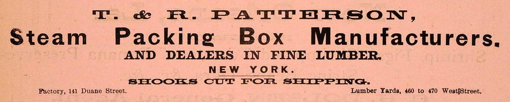 1883 Ad Patterson Steam Packing Box Lumber Duane Street - ORIGINAL GROC1