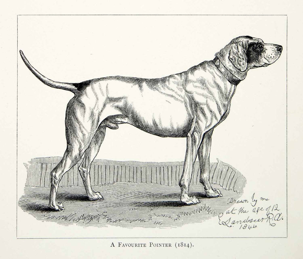 1877 Wood Engraving Edwin Landeer Domesticated Pet 1814 Art Pointer Dog XAW4