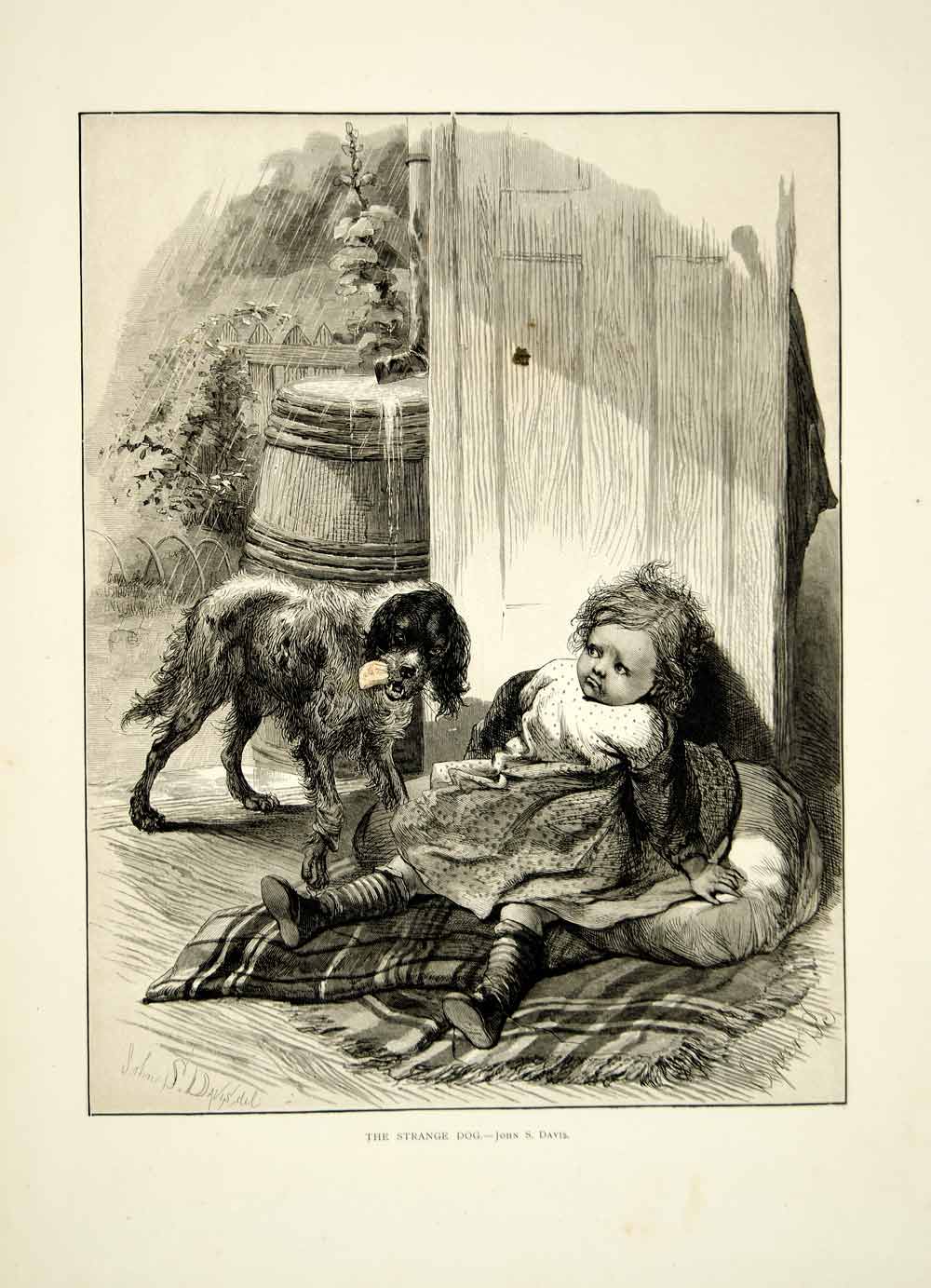 1873 Wood Engraving John Steeple Davis Art Strange Dog Children Pets YALD1