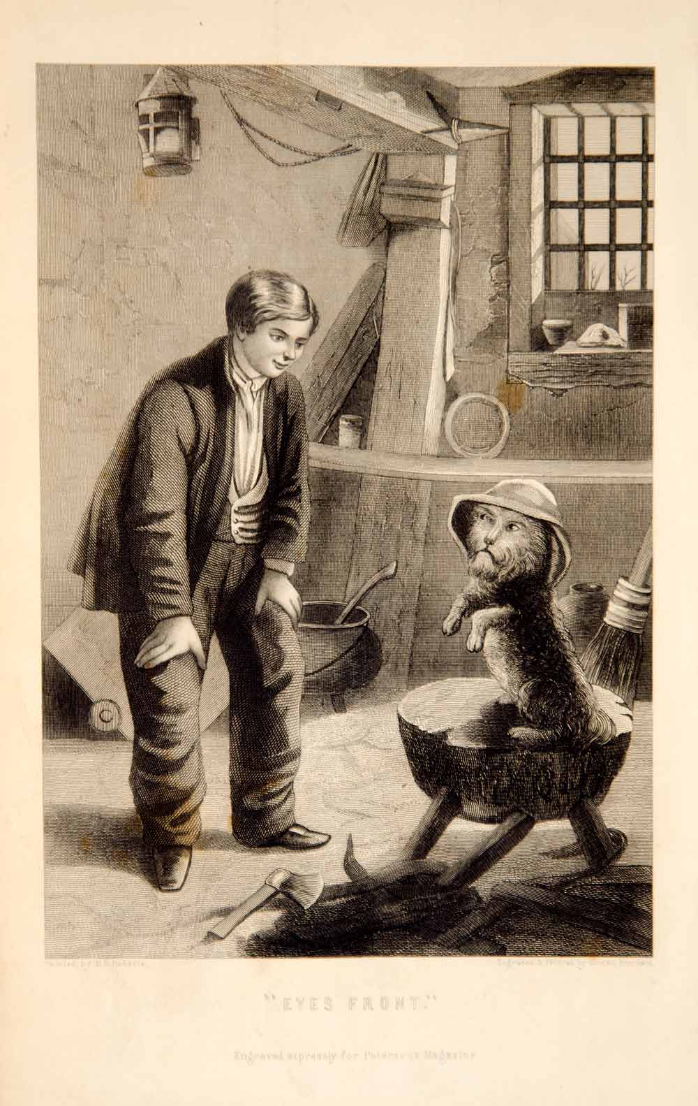 1870 Steel Engraving Victorian Boy Dog Pet Tricks Henry Benjamin Roberts YPM3