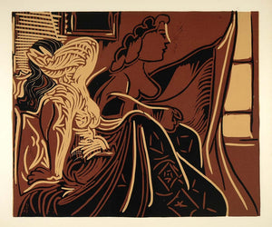 Period Paper has acquired a large collection of original lithographs of linoleum cuts (linocuts) by Pablo Picasso. Picasso worked in this medium extensively from 1958 to 1961. The Galerie Louise Leiris, Paris loaned Picasso's original linocuts for the creation of these lithographs. During this production, an additional 50 lithographs were created in large format and were hand-signed by Picasso and which can be found online priced between $26,000 and $180,000 per linocut. Only a rare few of these smaller lithographs were hand-signed by Picasso. The items offered here are the lithographs most sought after by collectors, second only to the hand-signed group of 50. They are extraordinary in their creation, detail, and condition. They are regarded unconditionally as fine art and consistently appreciate in value.