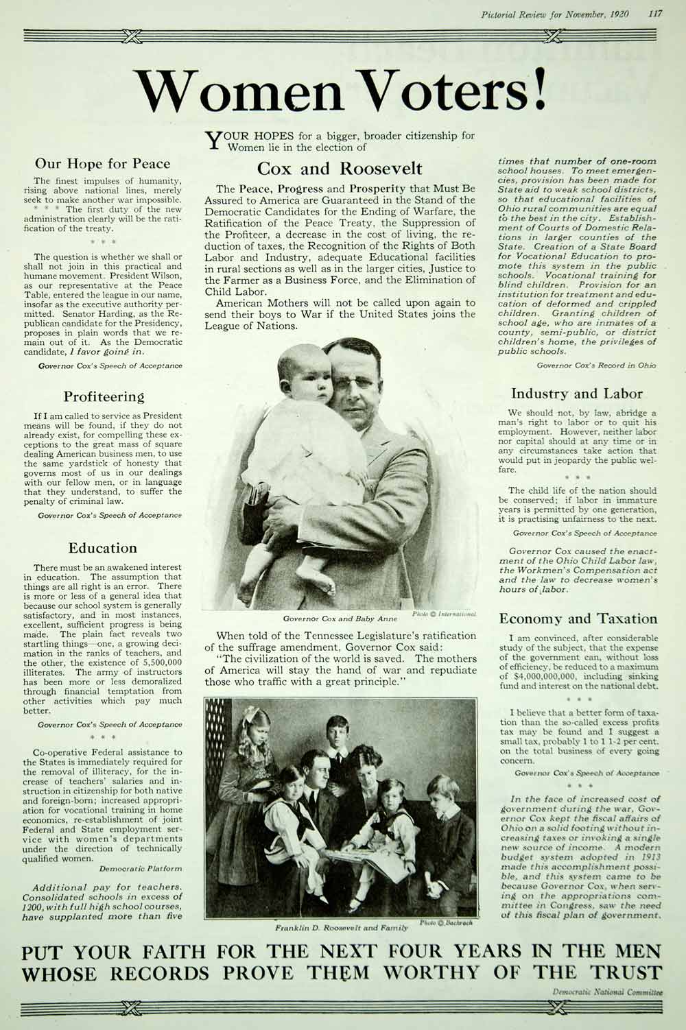 1920 Ad Presidential Election Democratic James M Cox 19th Amendment Women Voters