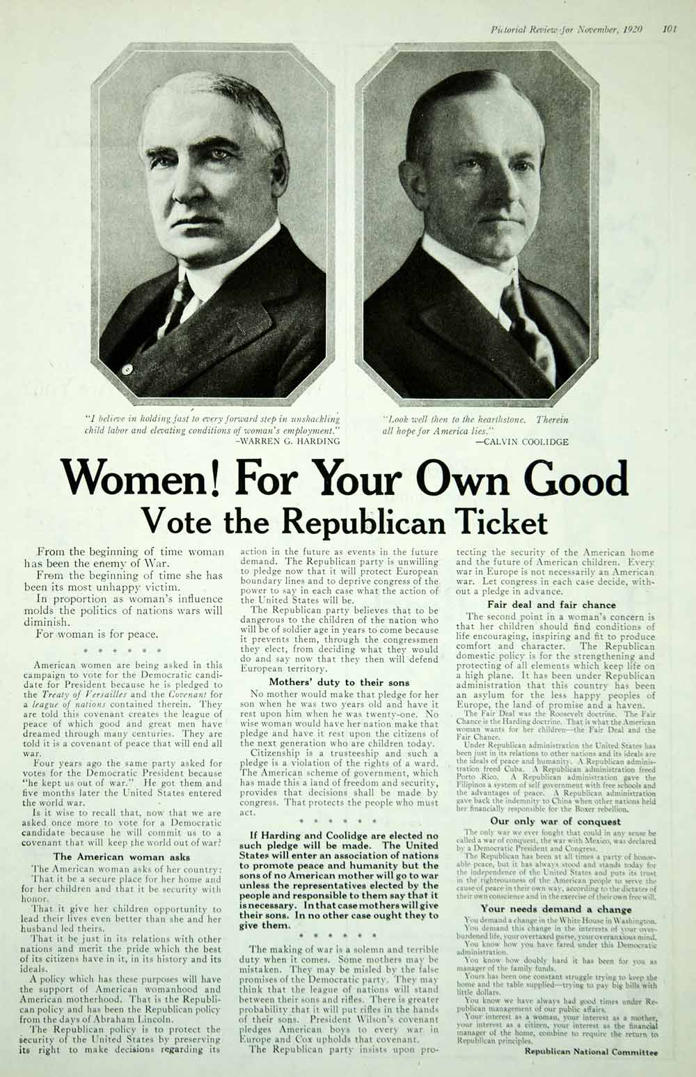 1920 Ad Presidential Election Republican Harding 19th Amendment Women Voters