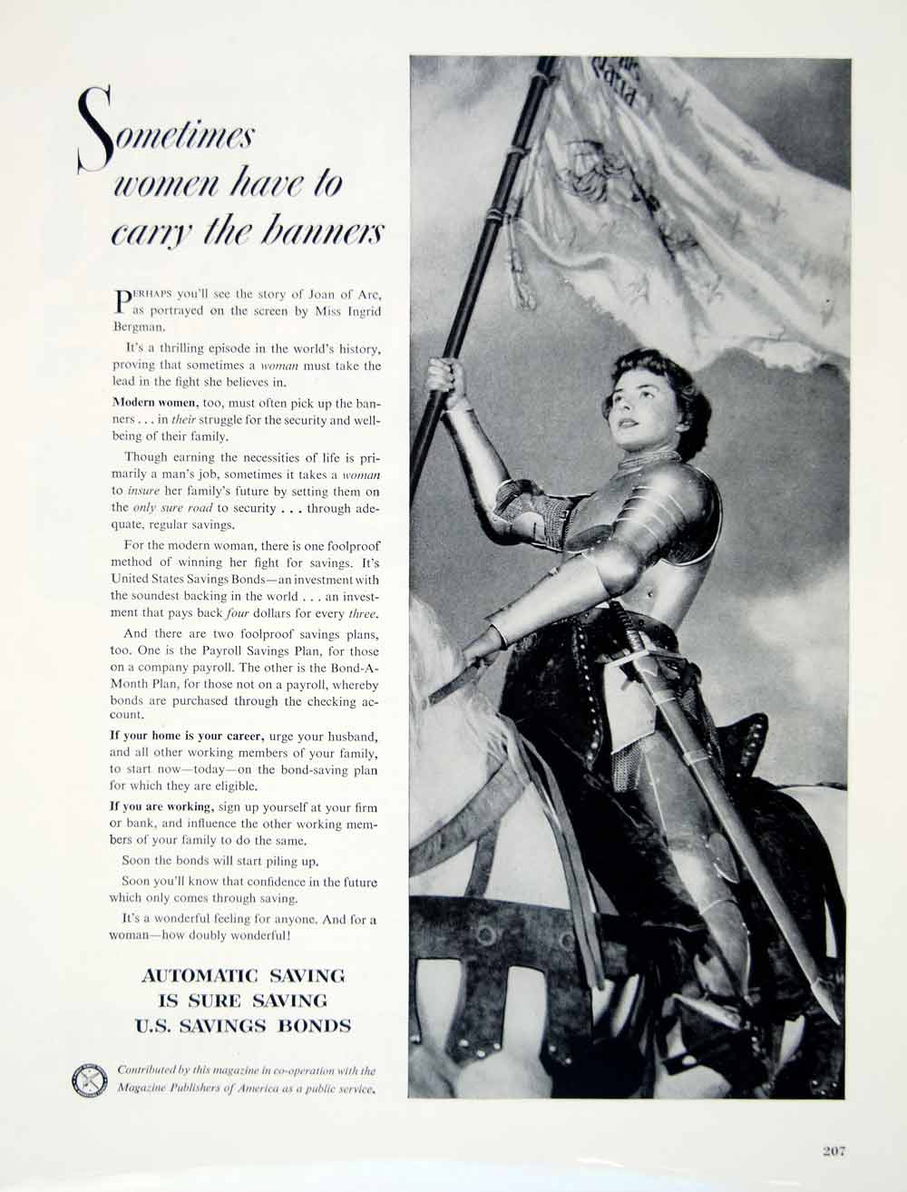 1949 Ad Public Service Announcement U S Savings Bond Joan Arc Ingrid YFT4