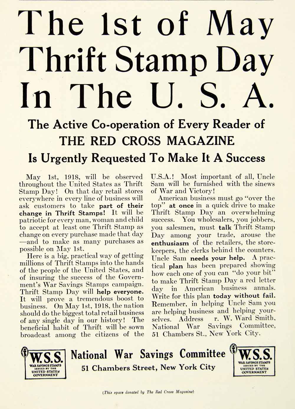 1918 Ad Thrift Stamp WWI National War Savings Committee 51 Chambers St New YRC1