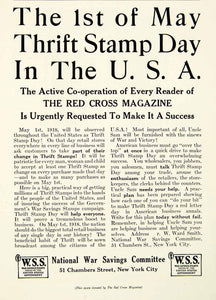 This is an original 1918 black and white print ad for Thrift Stamps issued by the U.S. Government and National War Savings Committee to civilians during World War I.