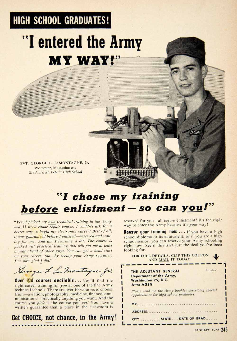 1956 Ad US Army Recruitment Pvt George L LaMontagne Jr Military School PSC3