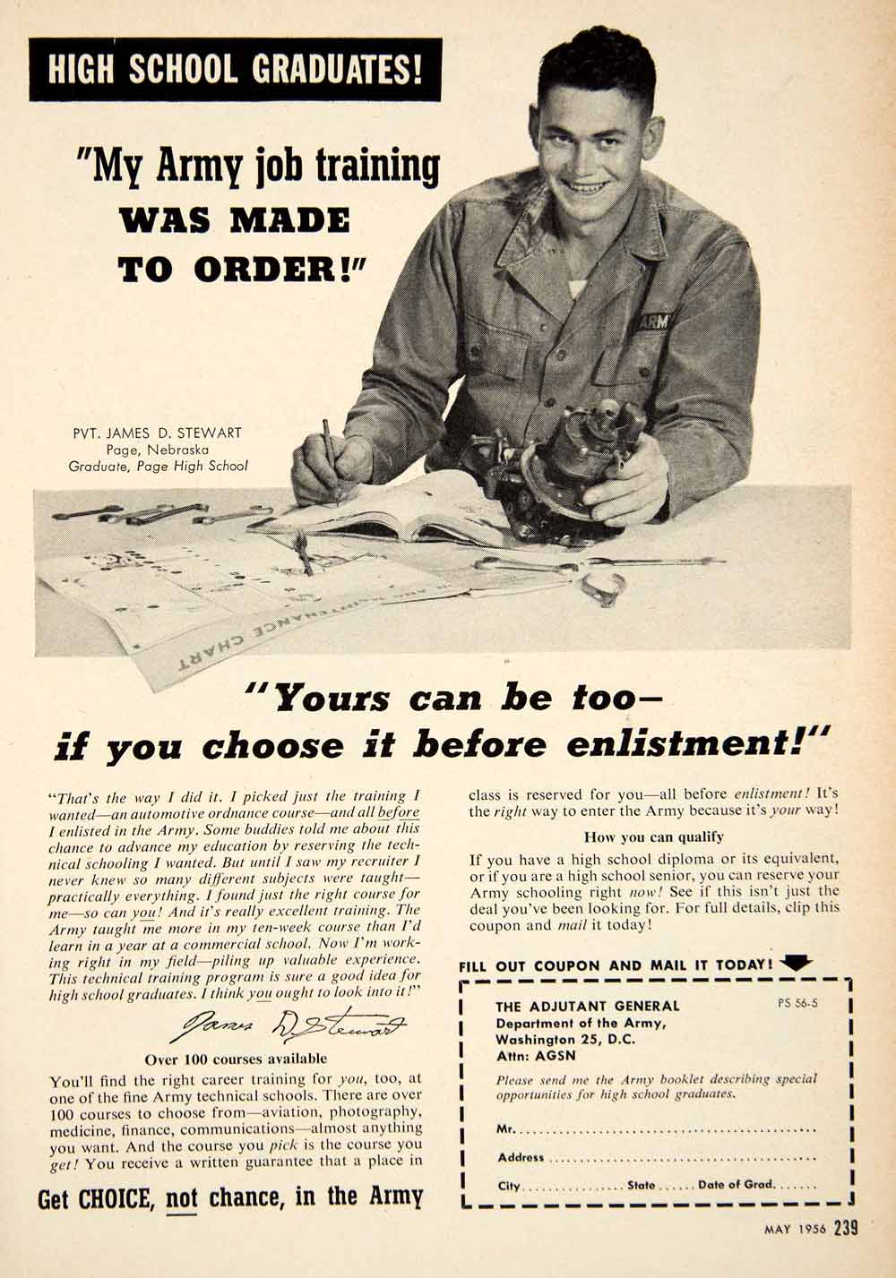 1956 Ad US Army Recruitment Pvt James D Stewart Military Enlistment PSC3