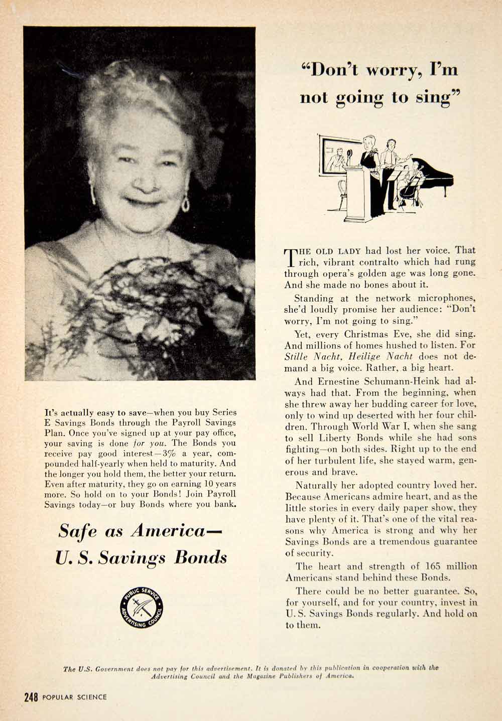 1956 Ad Council PSA US Savings Bonds Ernestine Schumann-Heink Opera Singer PSC3