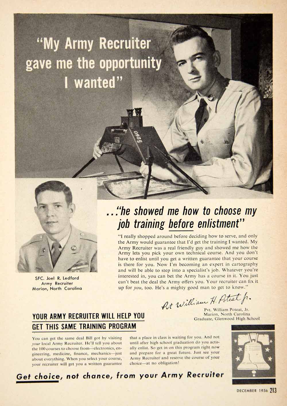 1956 Ad US Army Recruitment SFC Joel R Ledford Military Enlistment PSC3