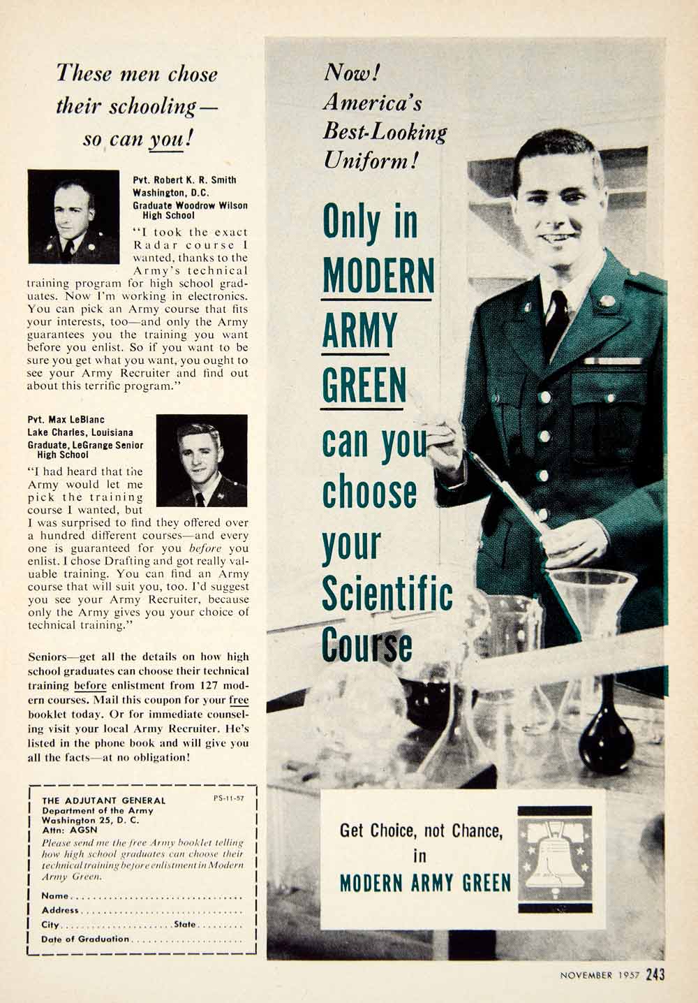1957 Ad US Army Recruitment Enlistment Pvt Max LeBlanc Military Science PSC3