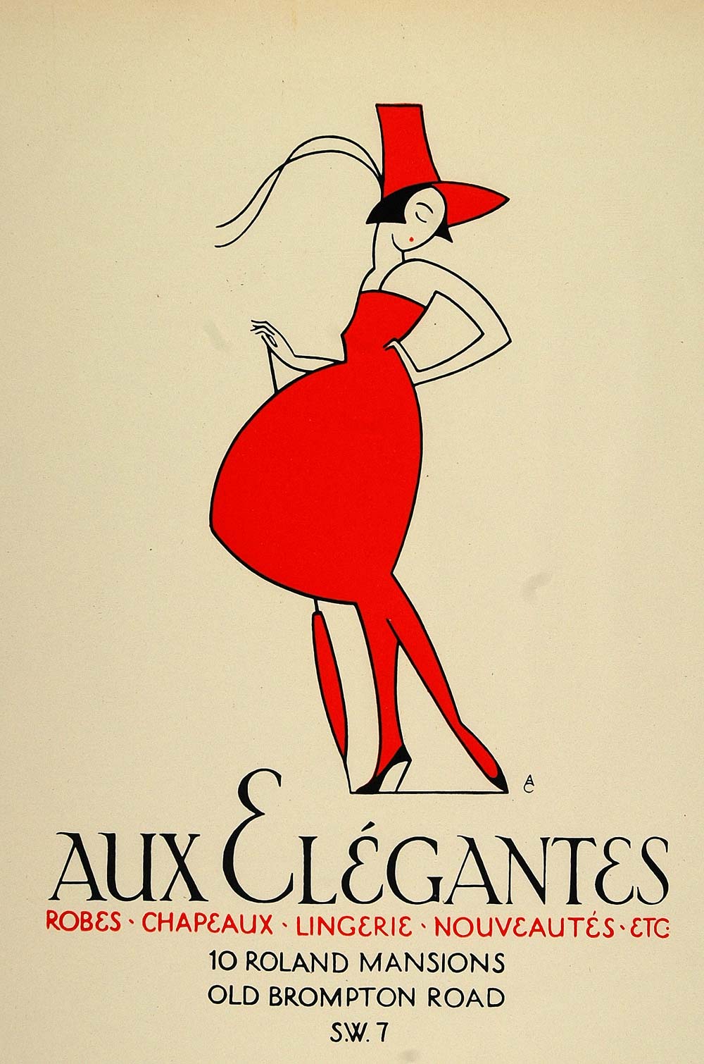 1924 Lithograph Aldo Cosomati Art Deco Mini Poster Aux Elegantes Fashion Style