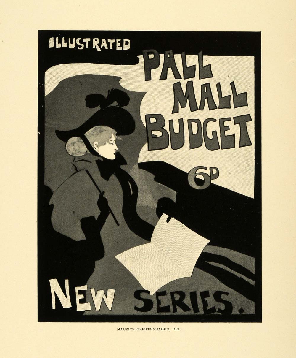 1895 Print Maurice Greiffenhagen Art Nouveau Poster Pall Mall Budget TMP1