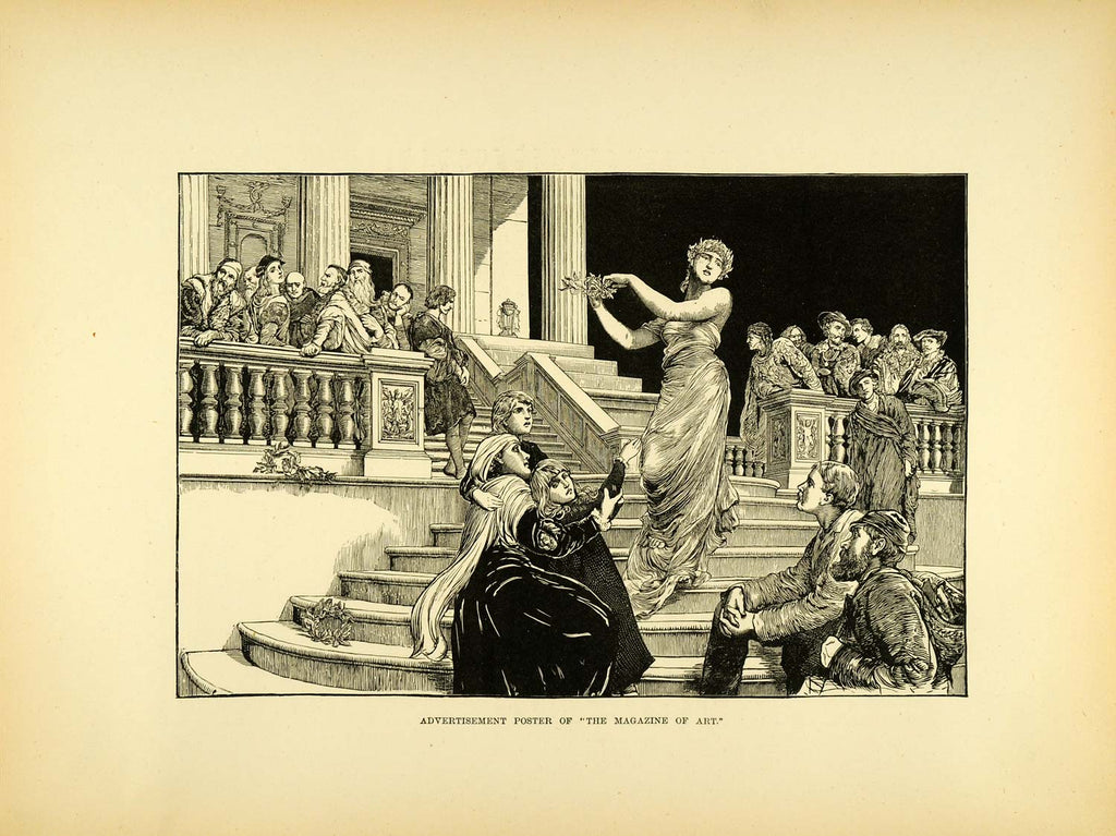 1887 Wood Engraving Advertisement Poster Magazine Art Drama Stage Theatre XAE1