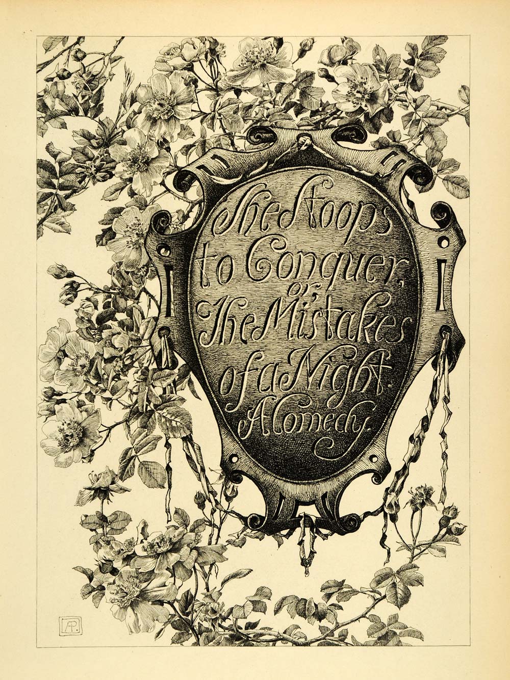 1920 Photogravure Alfred Parsons Art She Stoops Conquer Comedy Play Title XDA7