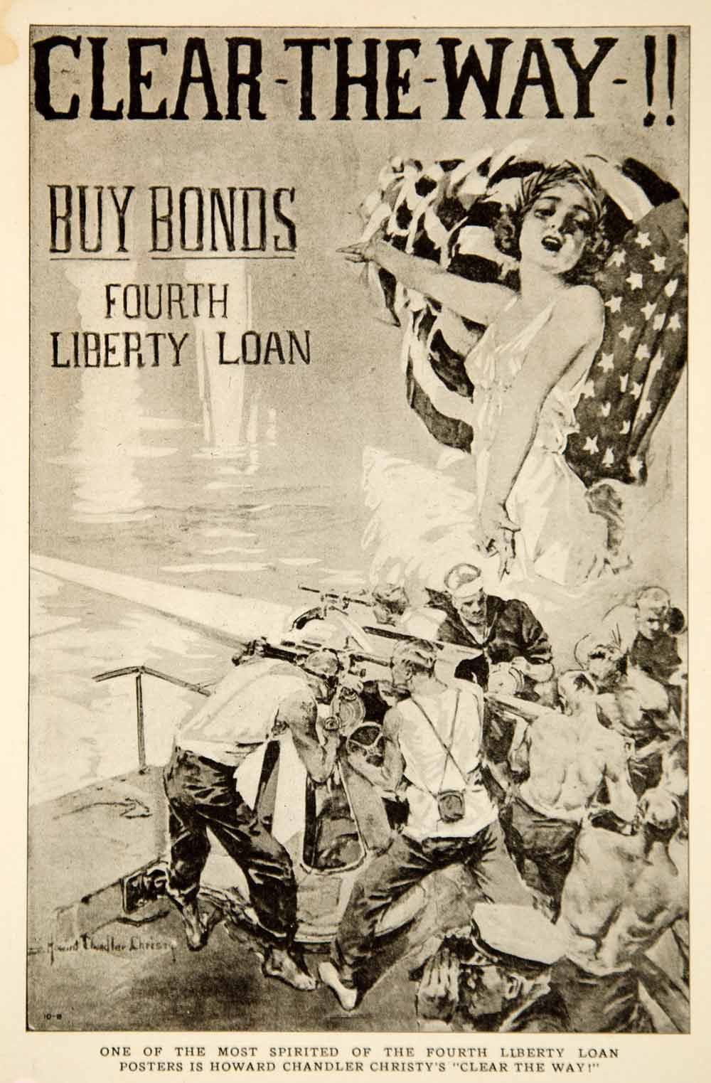 1918 Print World War I Poster Howard Chandler Christy Clear the Way Liberty Bond