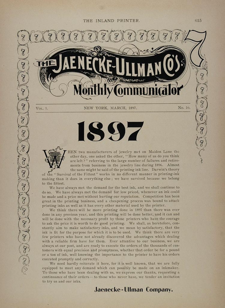 1897 Print Ad Jaenecke Ullman Company Printing Inks - ORIGINAL ADVERTISING IP1