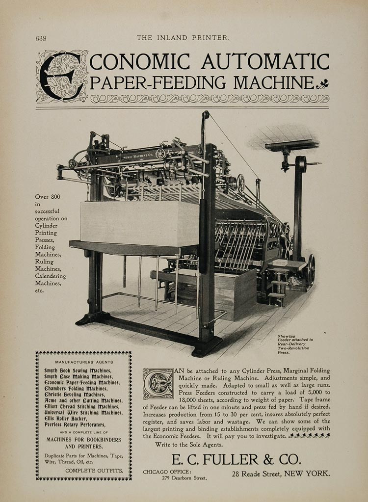 1897 Ad Economic Automatic Paper Feeding Machine Fuller - ORIGINAL IP1