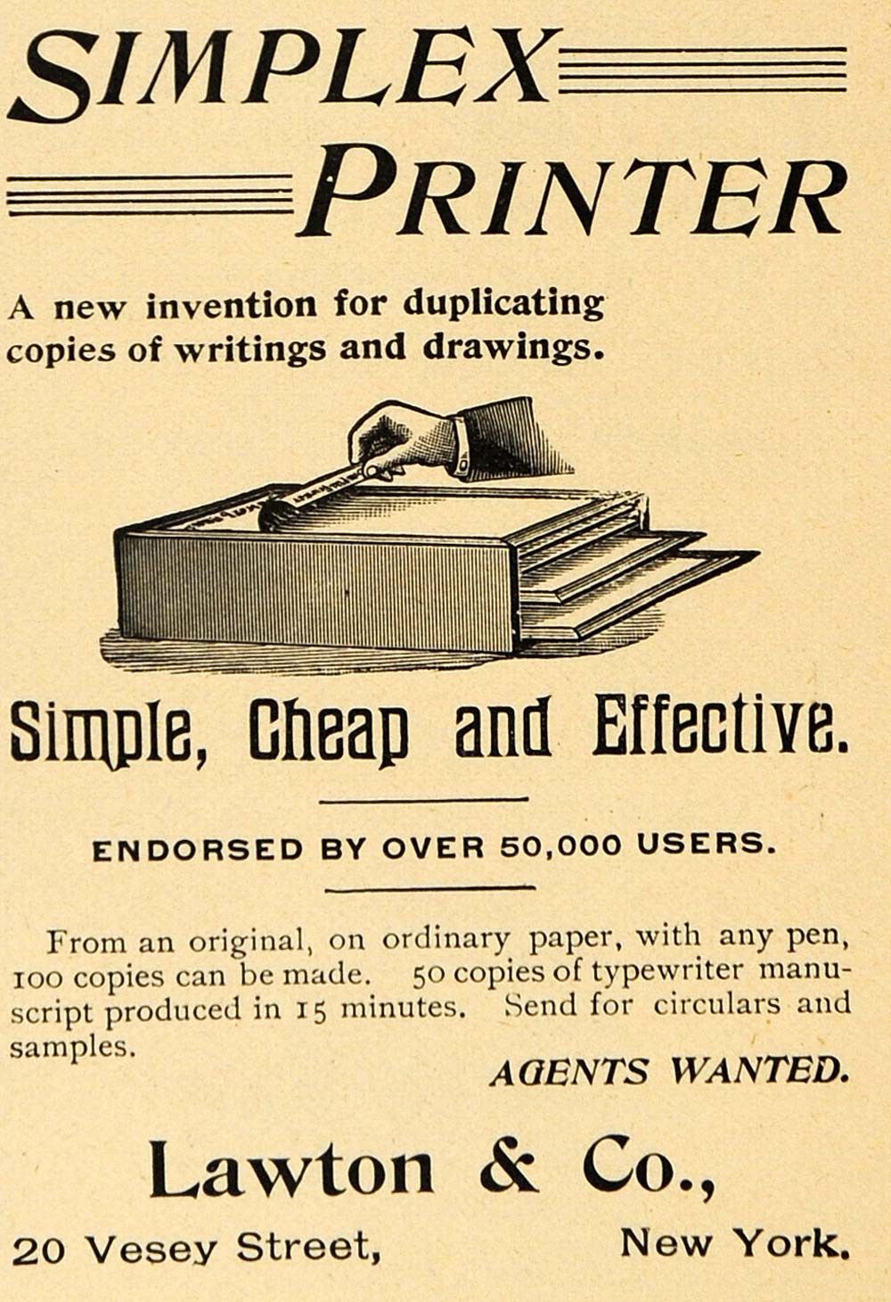 1895 Ad Simplex Printer Lawton & Company Paper Copier - ORIGINAL TFO1