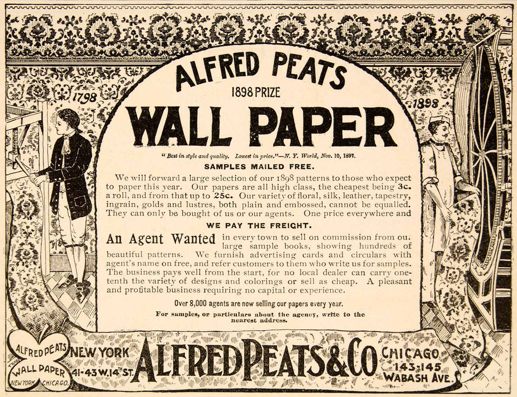 1898 Ad Alfred Peats Wall Paper Company Chicago Household Decoration YDL1