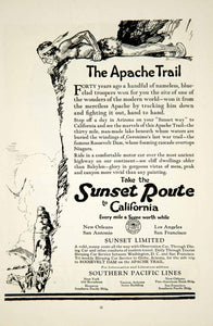 1921 Ad Southern Pacific Railroad Apache Trail Sunset Route Trains Indian YSC1