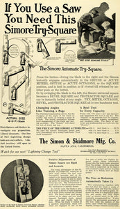 This is an original 1922 black and white print ad for Simore tools from the Simon & Skidmore Manufacturing Company of Santa Ana, California. Shown in the illustration are two young boys sawing a piece of wood.
