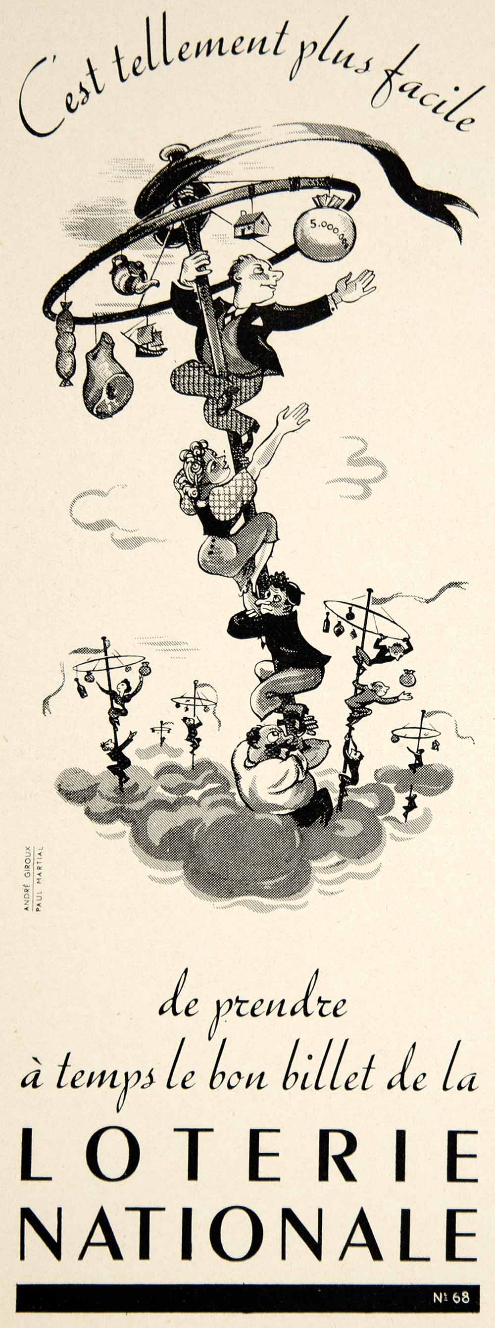 1939 Ad French National Lottery Loterie Nationale Cartoon Art Illustration VEN9
