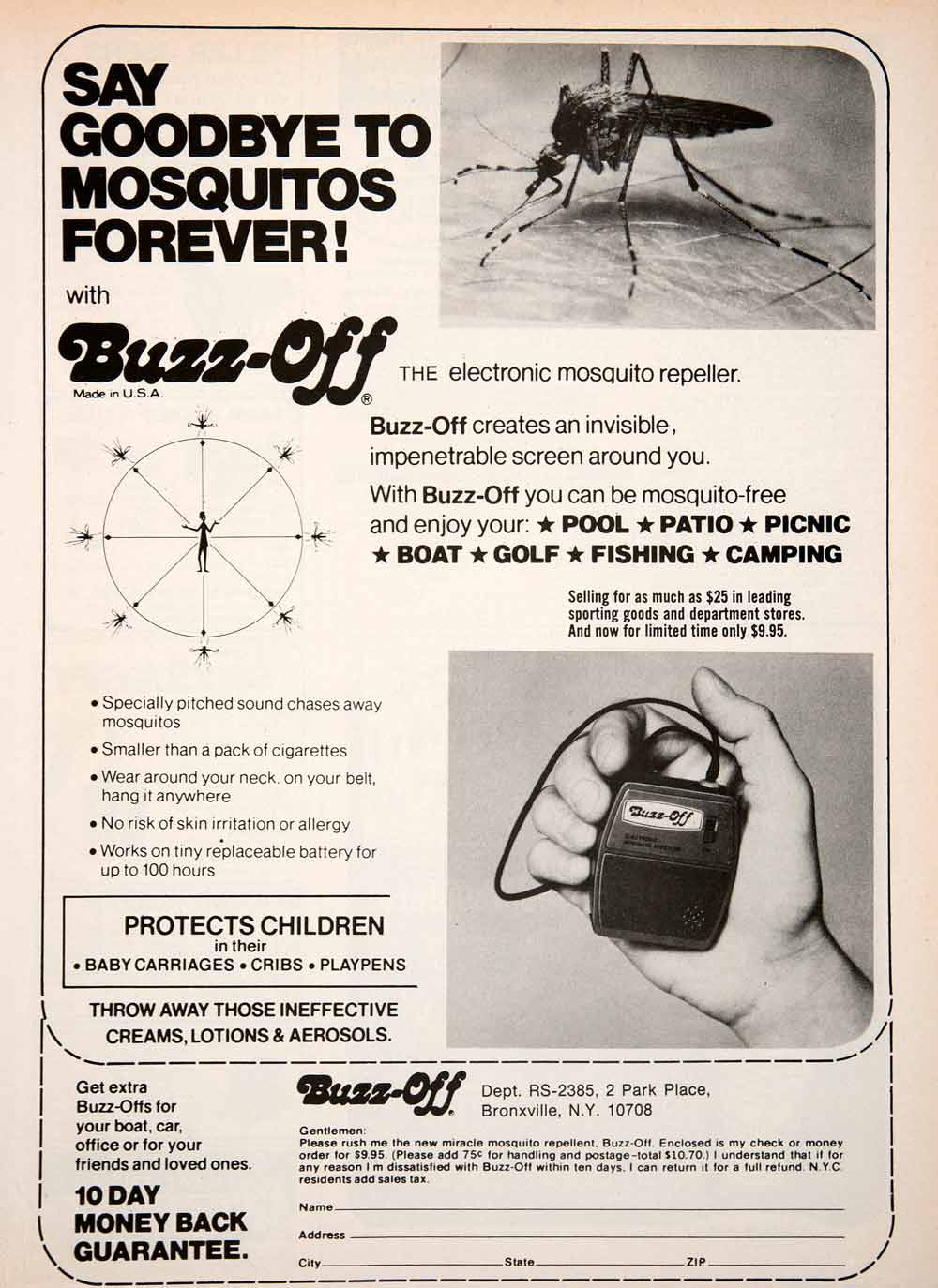 1976 Ad Buzz-Off Mosquito Repellant Insect Bronxville Electronic SF4