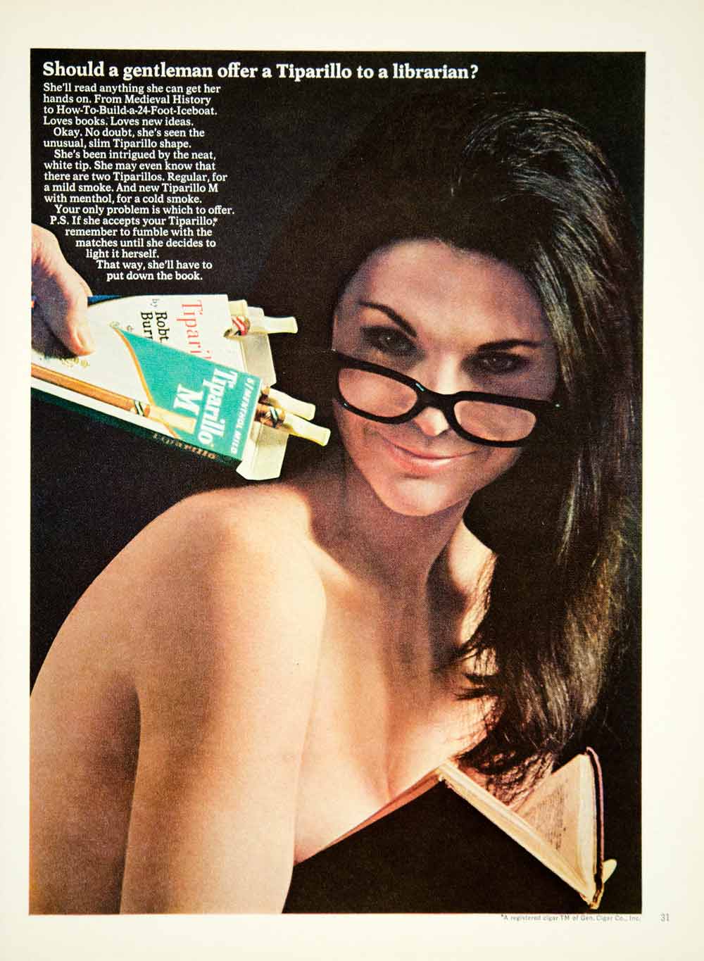 1967 Ad Tiparillo Cigars Menthol Filter Tip Women Smoking Nude Librarian YMMA3