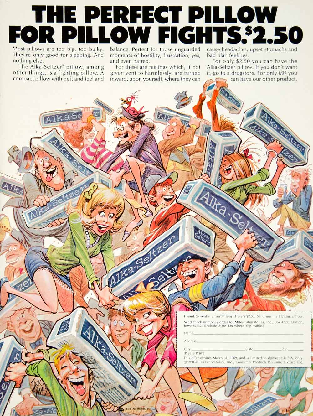 1968 Ad Alka-Seltzer Antacid Pillow Fight Miles Laboratories Cartoon Jack YMMA3