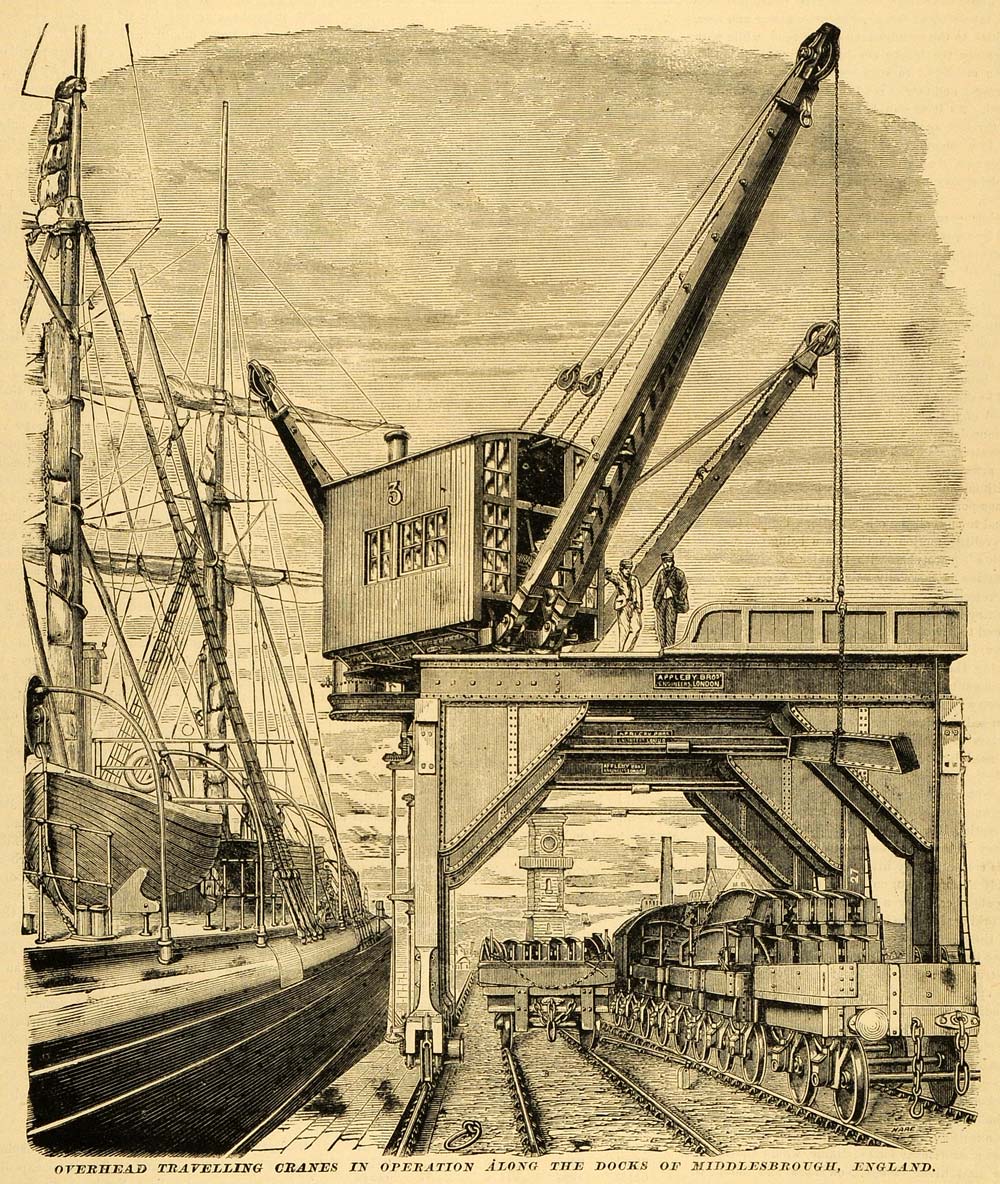 1874 Print Overhead Traveling Cranes Gantry Docks Middlesbrough England MAB1