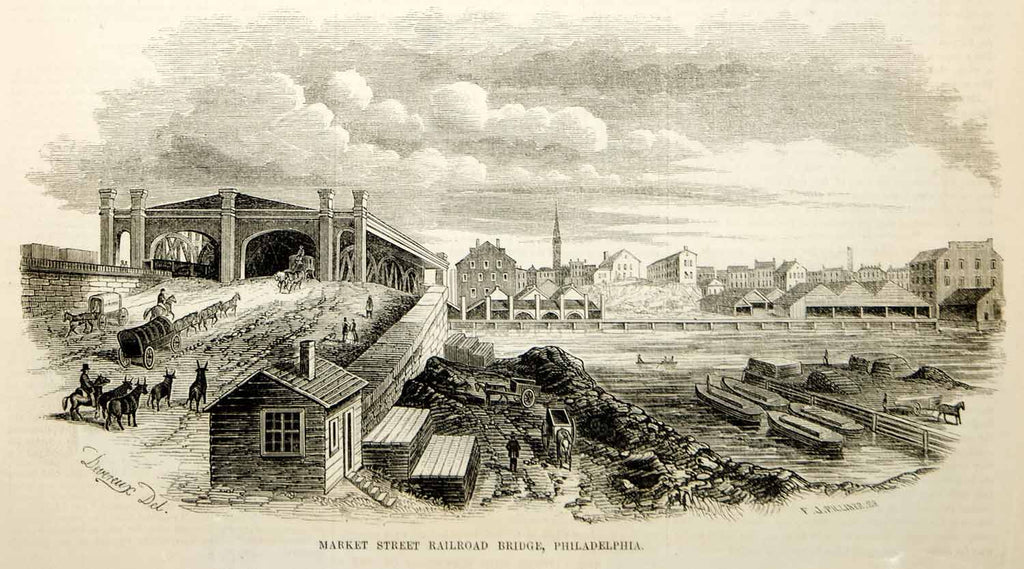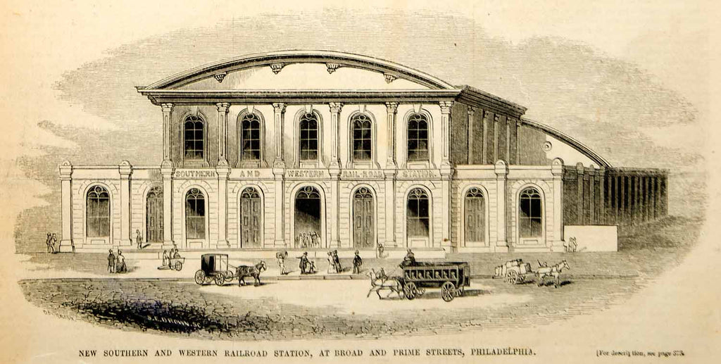 1853 Wood Engraving Southern and Western Railroad Station Philadelphia Terminal