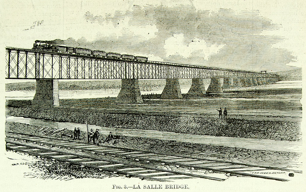 1873 Wood Engraving Railroad Bridge Illinois River La Salle Clarke Reeves YSA3