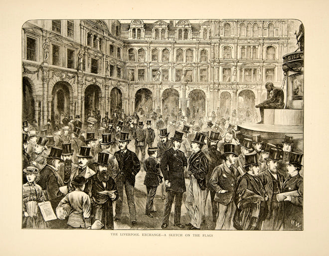 1870 Wood Engraving Art Liverpool Exchange Railway Station England YTG1