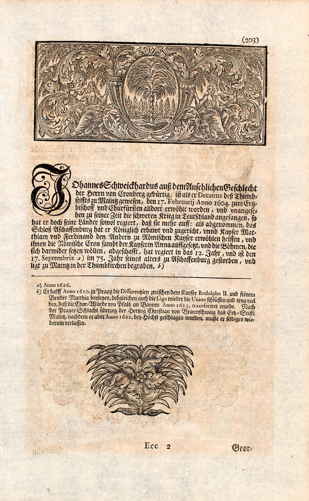 1721 Copper Engraving Portrait Johann Schweikhard Von Kronburg Archbishop EUM2