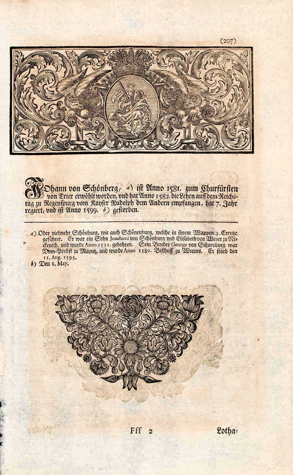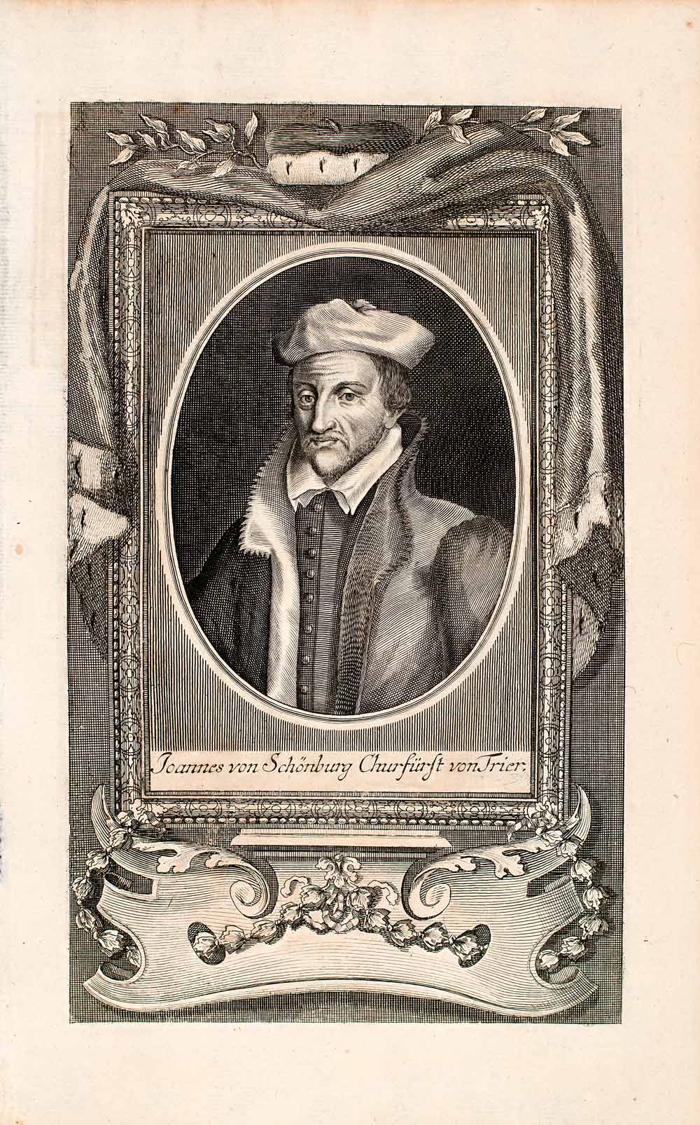 1721 Copper Engraving Portrait Johann Von Schonenberg Archbishop Trier EUM2
