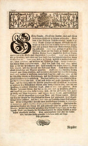 Period Paper is pleased to offer an extremely rare and impressive early eighteenth century collection of biographies and portrait engravings and etchings, produced in Leipzig, Germany in 1721 and 1722. Included are notable monarchs, rulers, religious figures, and members of notable Houses throughout Europe, including several genealogical charts of dynastic lines, spanning the sixteenth to early eighteenth centuries. The collection is comprised of exquisitely engraved and etched copper portrait plates framed by varying decorative motifs, all engraved by Johann Friedrich Rosbach. Many of the portraits include separate biographical pieces ranging in length from a single paragraph to several pages for more notable European monarchs and emperors. If present, the accompanying text is in German and is composed of beautiful woodcut text, with most pages containing elegantly etched drop cap initials, head-and tail-pieces and vignettes. The superb, folio-sized stock upon which the collection is engraved and etched employed the latest advances in eighteenth century paper making and highlights the era's predilection for strong, lightly sized paper with a fine structure and smooth surface. The paper's characteristics are thus similar to Japanese Gampi, and the result is well-preserved and crisp images that exceptionally capture Rosbach's fluid and sharp line work. This collection represents a unique opportunity to collect a valuable part of European history stunningly composed and illustrated.